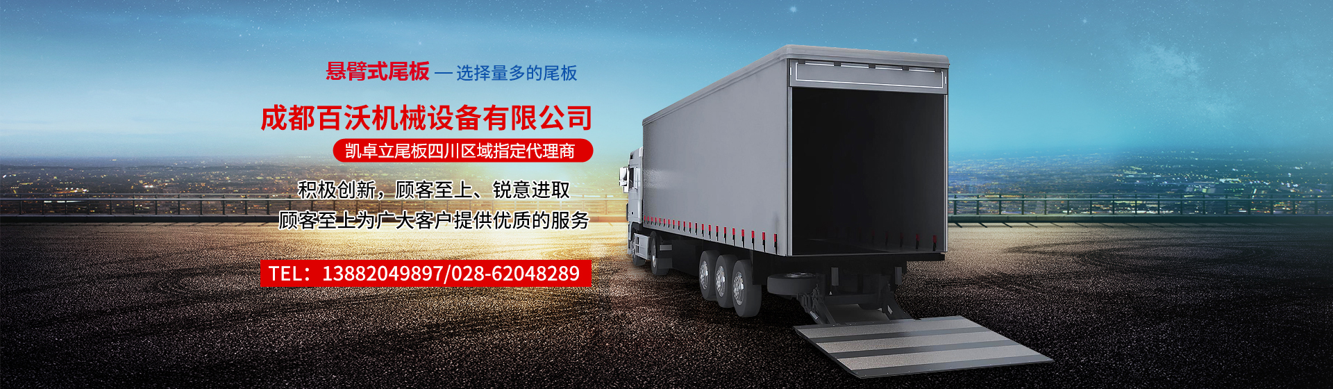 成都百沃機械設備有限公司是凱卓立尾板四川區域指定代理商。公司主營(yíng)汽車(chē)液壓升降尾板、飛翼車(chē)液壓系統、車(chē)載液壓支腿、升降平臺、專(zhuān)用車(chē)成套液壓系統等產(chǎn)品銷(xiāo)售、安裝、售后為一體的服務(wù)型公司。